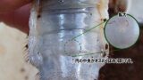 一方で、腹部判定の有効性を上記の100日以降で70gを超えるかどうかという基準で妥当か否かを検証したい。図5-2-1~4に孵化後6カ月以経った幼虫の体重と腹部の写真を示す。写真のように100gを超える個体には尻部より3個目の節の尻側に茶色いハイフン” - ”のようなマークが観察できる。一方、70gを下回る個体には当該マークは観察できなかった。しかし、マークは図のように観察しづらく付着物と混同する可能性があり、100日以降の体重測定がより確実で判断ミスをしずらい判定方法と結論する。